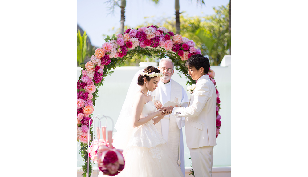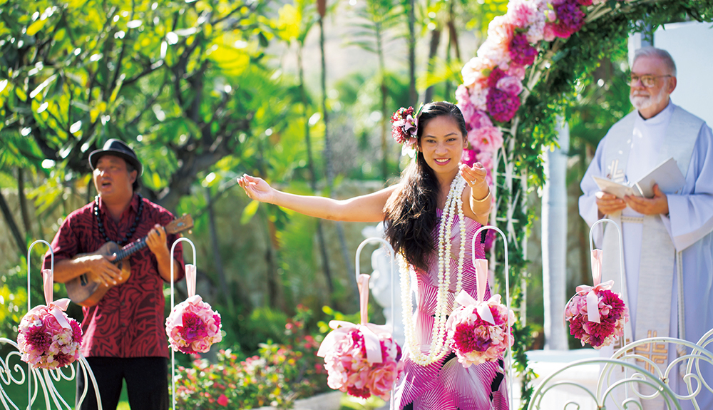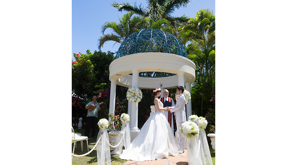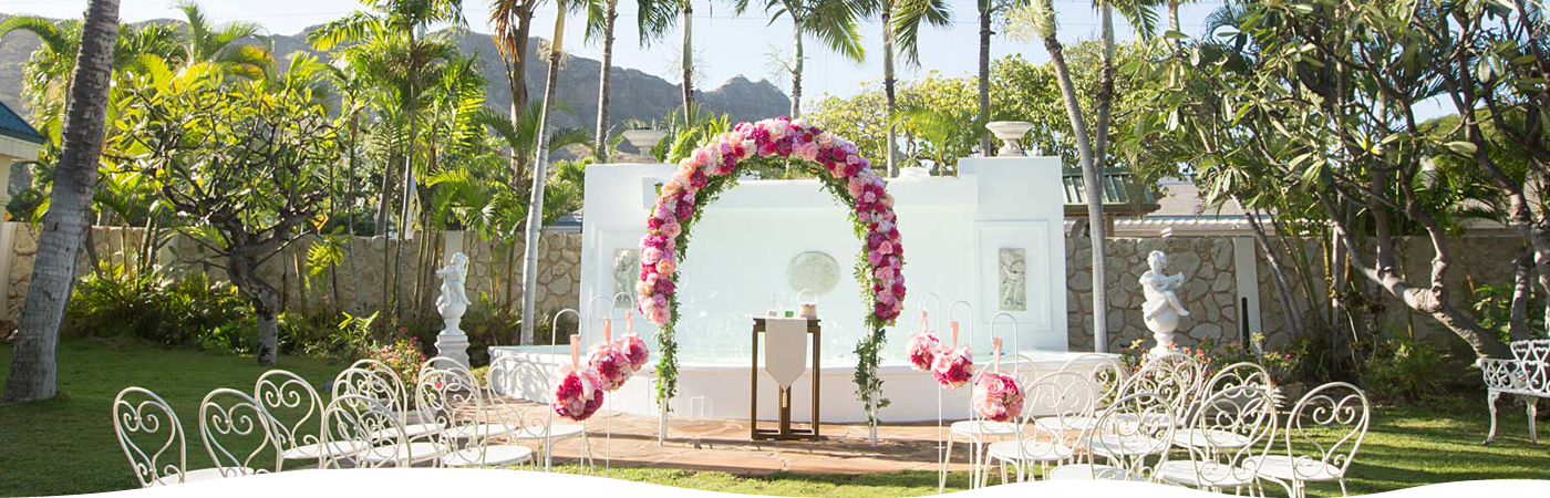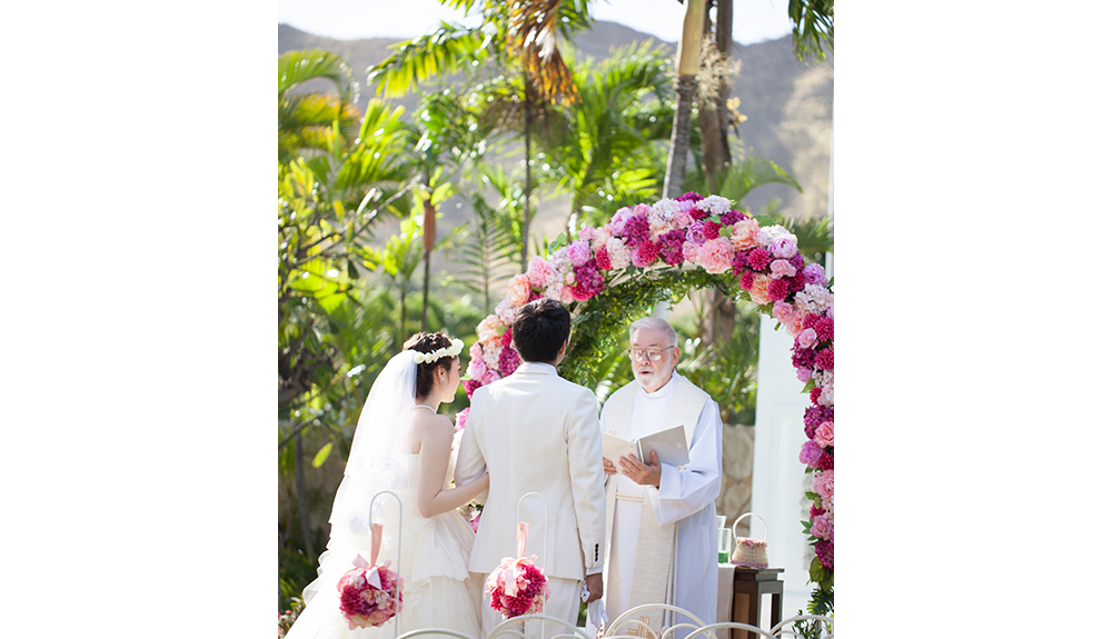 ダイヤモンドヘッド・アネラ・ガーデンの魅力は、色鮮やかな花々が咲くガーデン。ダイヤモンドヘッドを目の前に、ハワイの花々に囲まれて、水が流れる噴水の祭壇に誓う、フラワーガーデンウェディング。挙式中はウクレレの音色とシンガーの歌声がさらにお二人のハワイウェディングを盛り上げてくれます。挙式中にはレイの交換など、ハワイならではの挙式を演出します。さらに、フラダンスの演出を追加すれば、さらにハワイらしさがアップするでしょう。