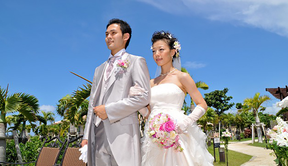 楽園リゾート「石垣リゾート グランヴィリオホテル」のガーデンで行うウェディング。緑の芝とトロピカルガーデンで自然の色彩に囲まれながら、憧れのリゾートウェディングが叶います。挙式後はマリンスポーツや離島巡りなどリゾートホテルならではのゆったりとしたハネムーンを満喫。