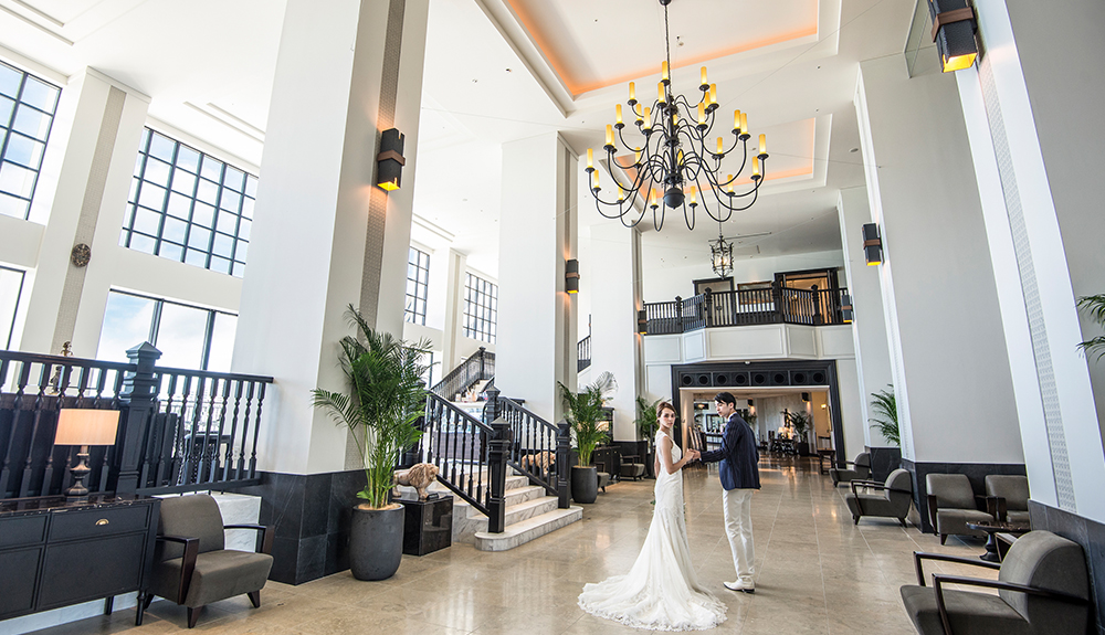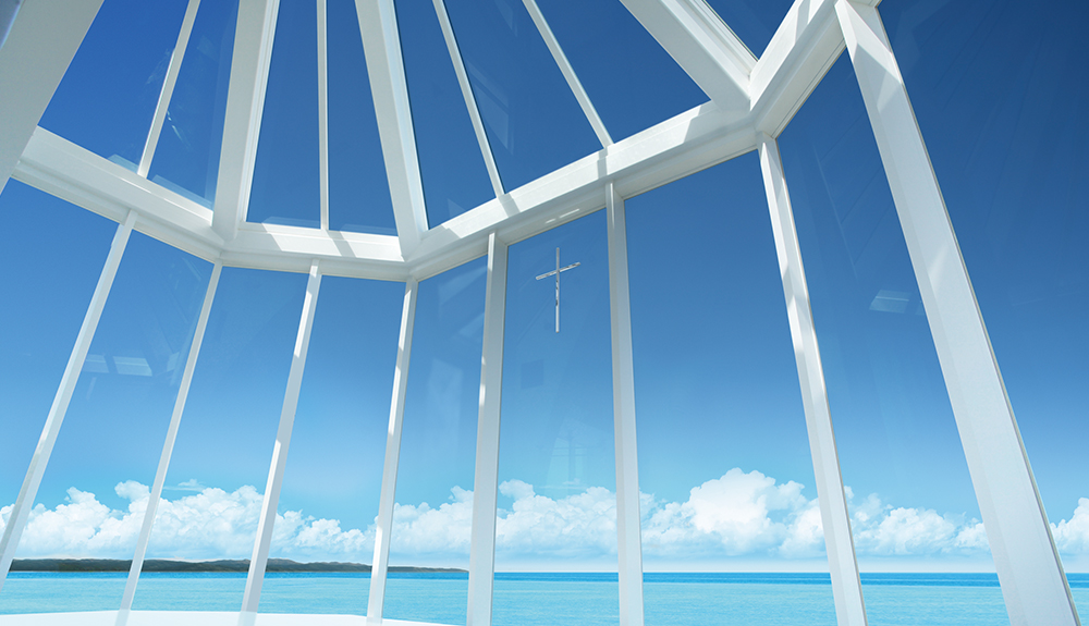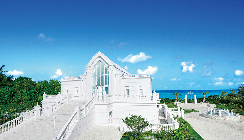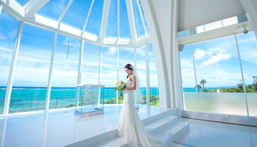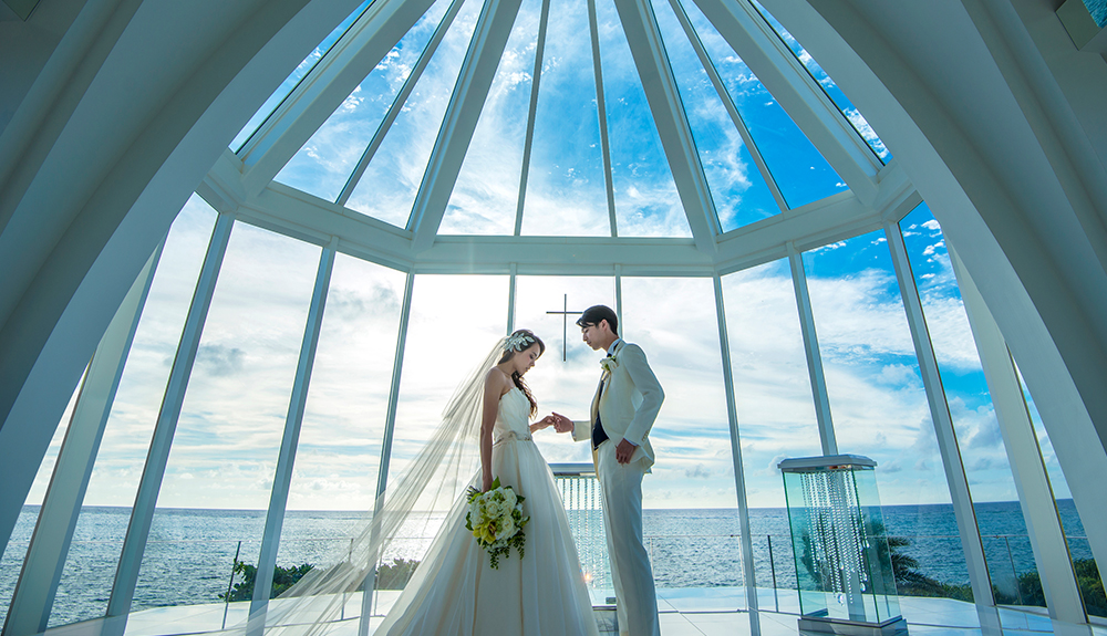 海と空、そして緑につつまれるクラシカル・モダンな礼拝堂。岬の先端にたたずみ、ぐるりと海に囲まれているようなガラスの聖域。優雅なバルコニーや庭園など、おふたりの時間を永遠に残す撮影シーンにあふれています。