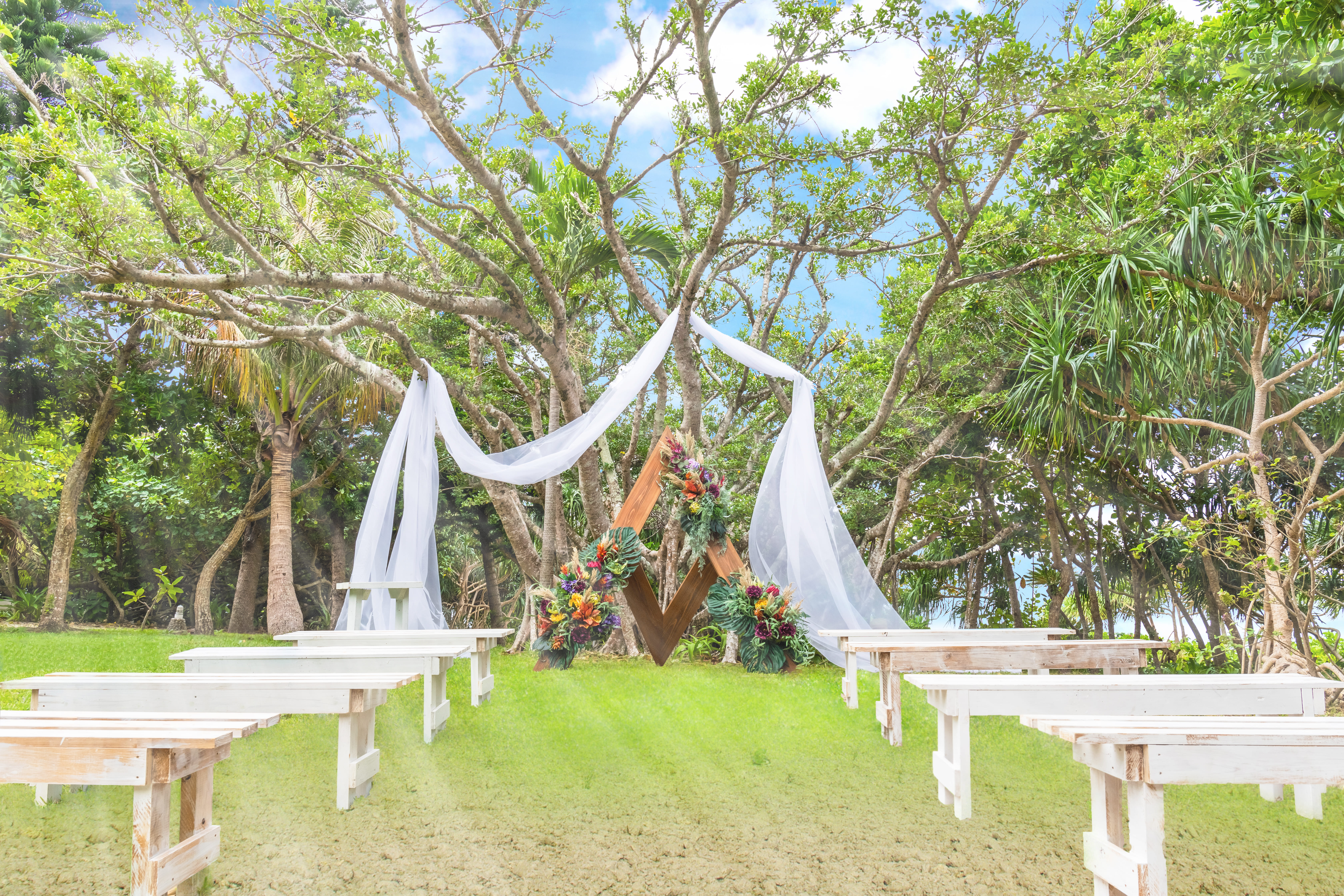 石垣島の爽やかな風を感じながら、大自然のエネルギーやパワーが宿る樹木に見守られ愛を誓うガーデンウエディングは、おふたりとゲストの一生の思い出に。
